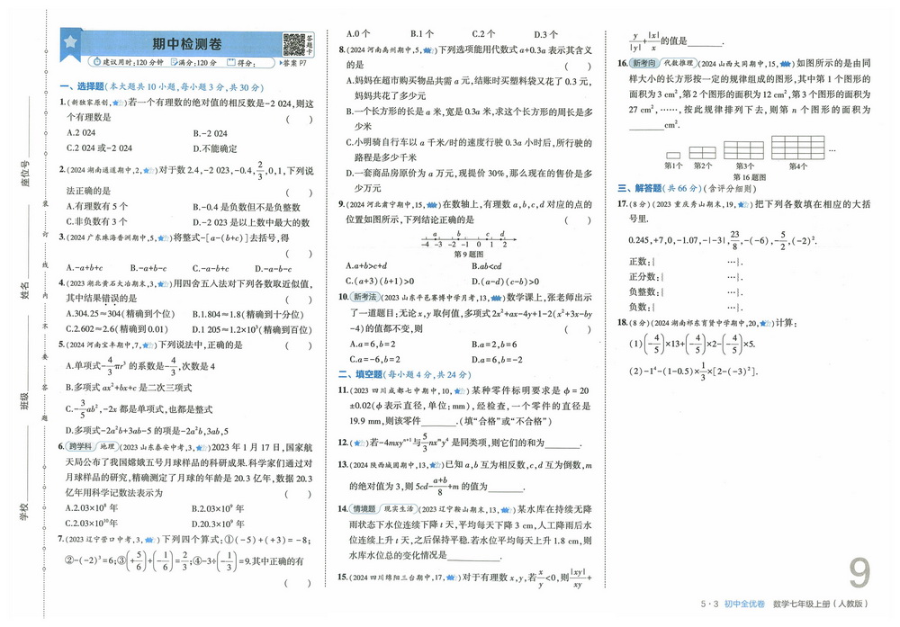 时间:120分钟 / 总分:120分/ 栏目:七年级数学上册2025-09-29 11:40:18