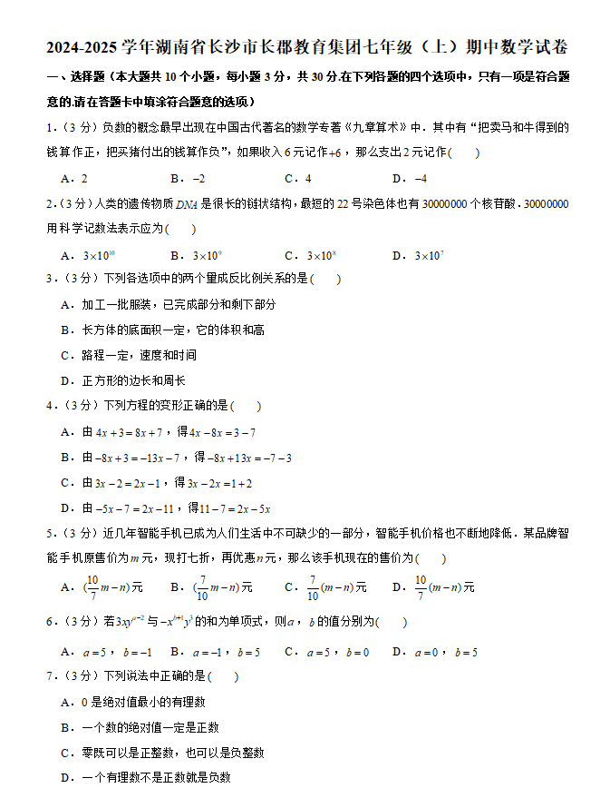 时间:120分钟 / 总分:120分/ 栏目:七年级数学上册2025-09-29 20:46:05