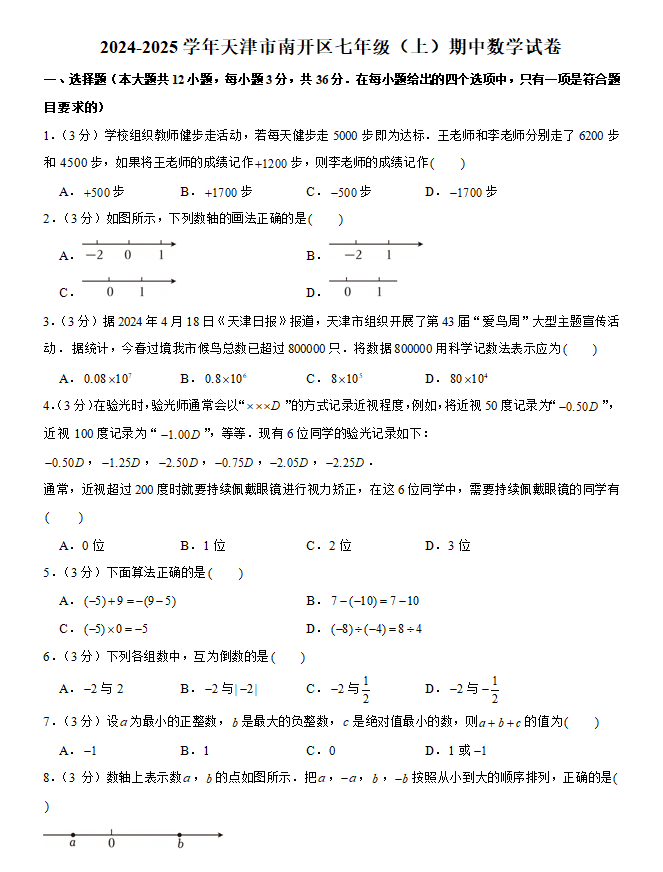 2025年天津市初中学业水平考试数学试卷