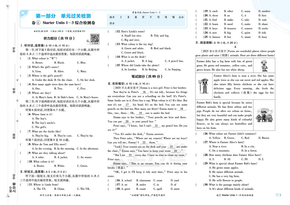 时间:120分钟 / 总分:120分/ 栏目:七年级英语上册2025-10-01 09:56:58