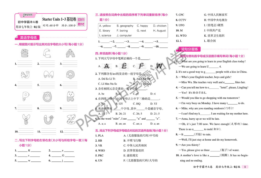 上一篇:新版教材人教版七年级上册英语Starter Units测试卷五