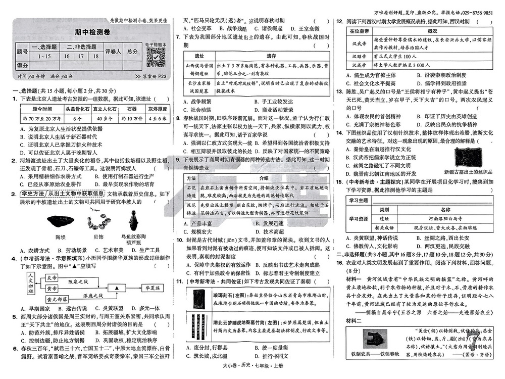 上一篇:新教材人教版七年级上册历史期中测试卷三