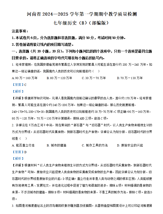 上一篇:2025广东省中山市中山纪中教育集团七年级上学期期中历史试题