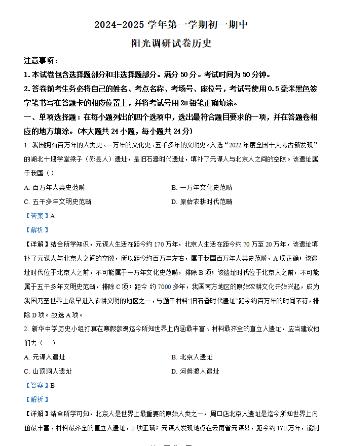 上一篇:2025河南省郑州市新郑市七年级上学期期中历史试题