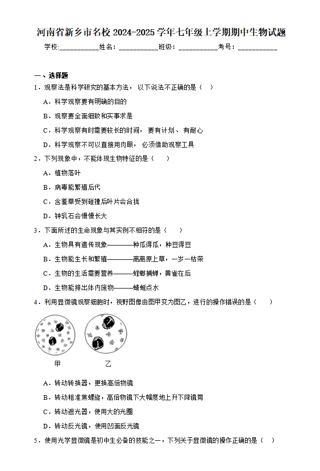 上一篇:广东省肇庆市高要区一中、二中集团共同体2024-2025学年七年级上学期期中生物试题