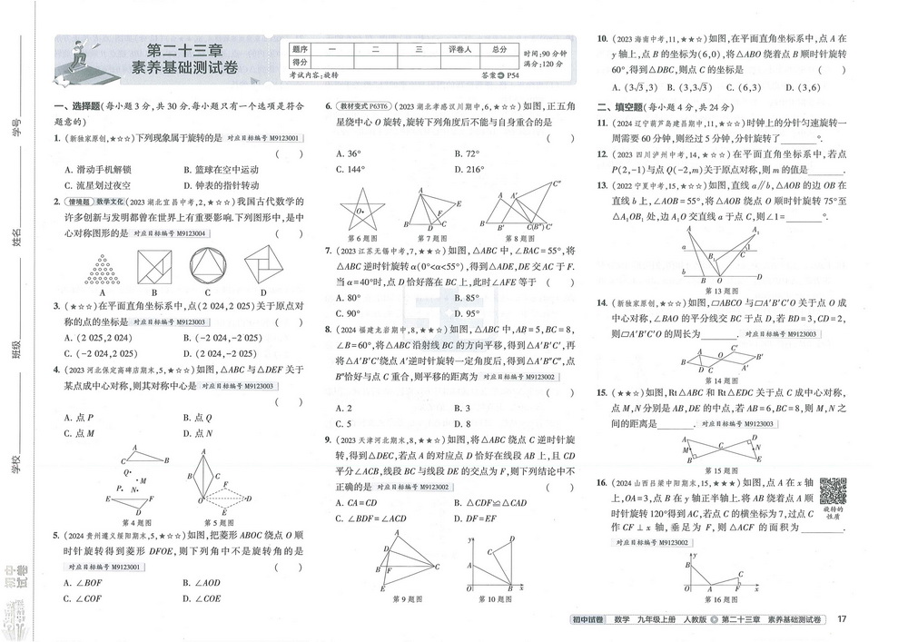 时间:120分钟 / 总分:120分/ 栏目:九年级数学上2025-10-09 08:25:57