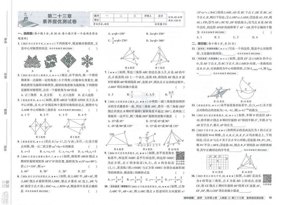 时间:120分钟 / 总分:120分/ 栏目:九年级数学上2025-10-09 08:31:04