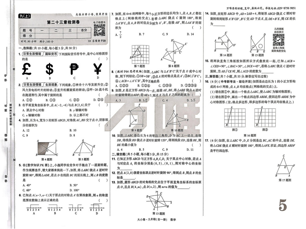 上一篇:人教版九年级上册数学第二十三章测试卷六