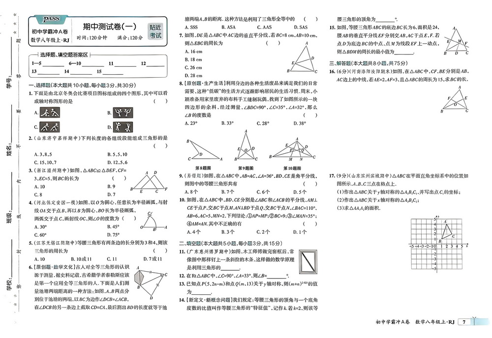 时间:120分钟 / 总分:120分/ 栏目:八年级数学上册2025-10-09 15:17:37
