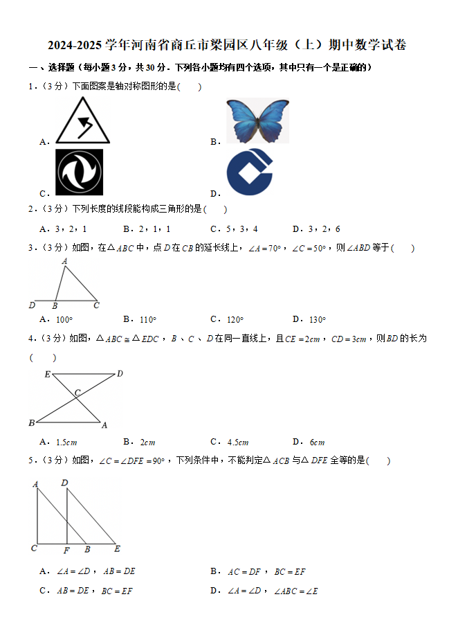 时间:120分钟 / 总分:120分/ 栏目:八年级数学上册2025-10-09 15:45:30