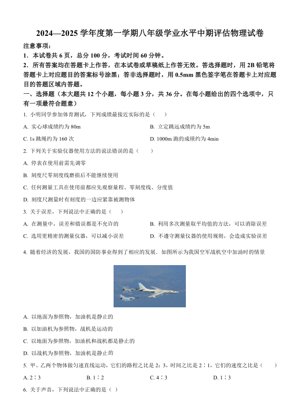 时间:120分钟 / 总分:120分/ 栏目:八年级物理上册2025-10-11 09:16:08