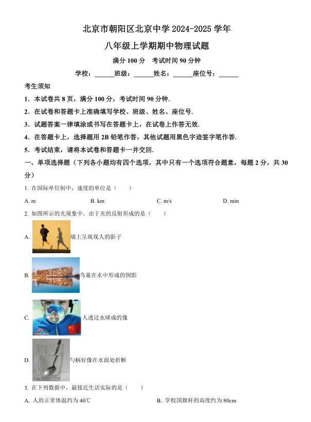 时间:120分钟 / 总分:120分/ 栏目:八年级物理上册2025-10-11 10:58:05