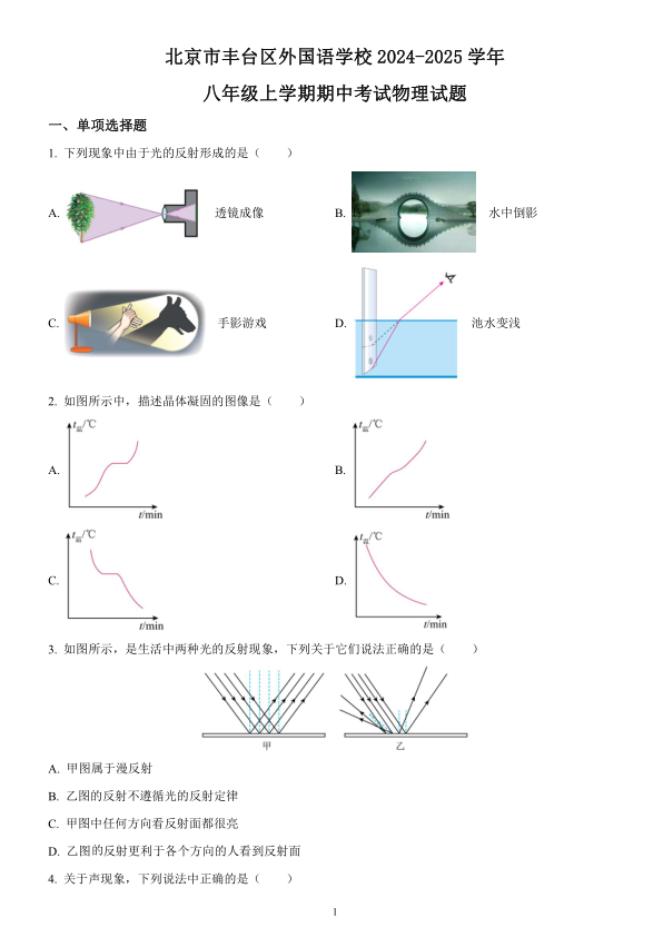 上一篇:北京市第一零九中学2024-2025学年八年级上学期期中考试物理试题