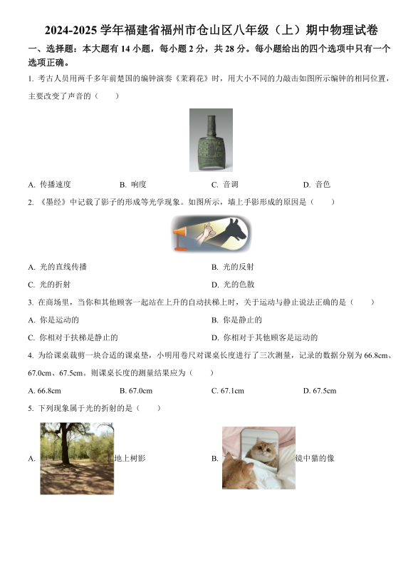 上一篇:北京市延庆区2024-2025学年八年级上学期期中物理试题