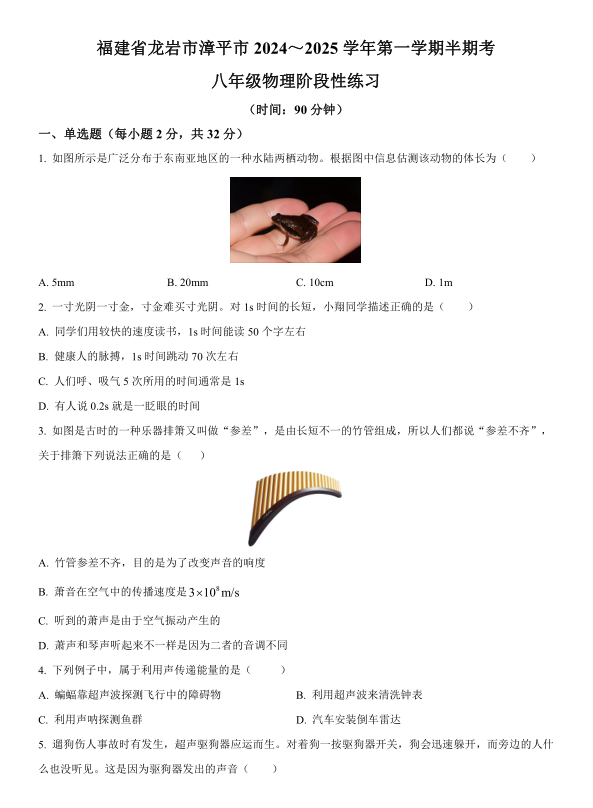 时间:120分钟 / 总分:120分/ 栏目:八年级物理上册2025-10-11 18:01:45