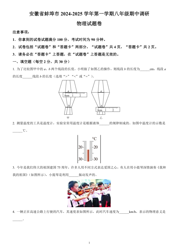 上一篇:安徽省安庆市2024-2025学年上学期期中综合素质调研八年级物理试卷