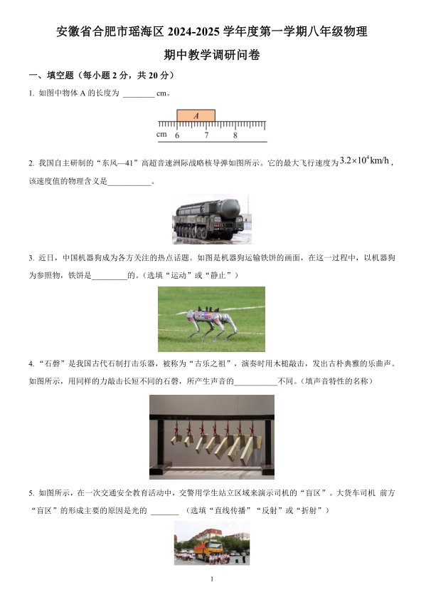 上一篇:安徽省合肥市蜀山区2024-2025学年八年级上学期期中物理试卷