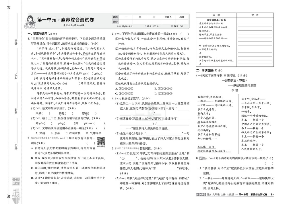 时间:120分钟 / 总分:120分/ 栏目:九年级语文上2025-10-20 21:50:47