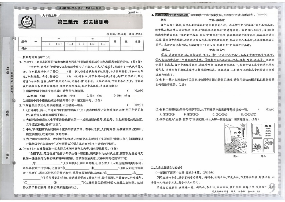时间:120分钟 / 总分:120分/ 栏目:九年级语文上2025-10-21 13:06:58