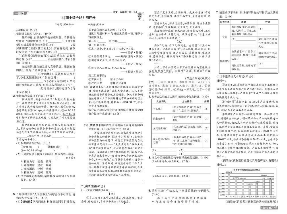 时间:120分钟 / 总分:120分/ 栏目:八年级语文上册2025-10-27 17:39:54