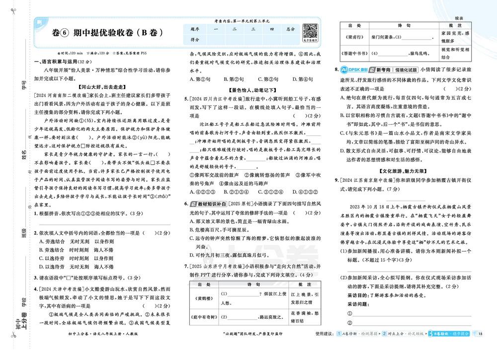 时间:120分钟 / 总分:120分/ 栏目:八年级语文上册2025-10-27 17:45:09