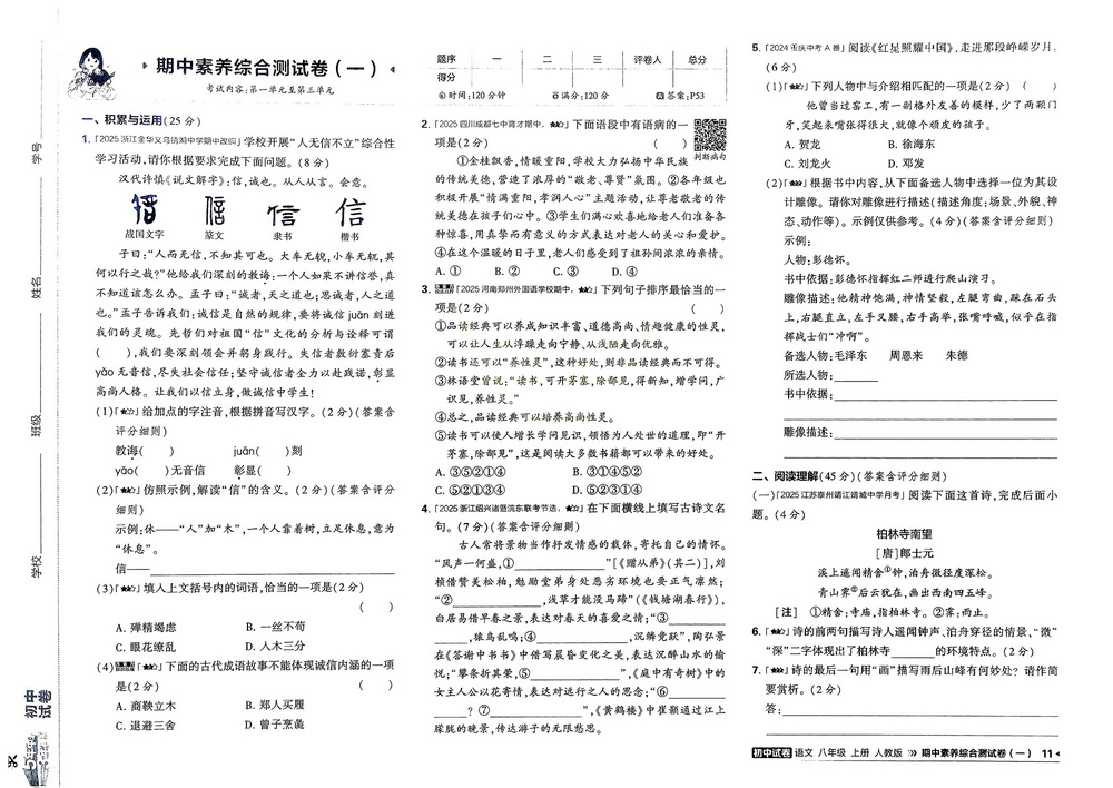 时间:120分钟 / 总分:120分/ 栏目:八年级语文上册2025-10-27 17:49:07