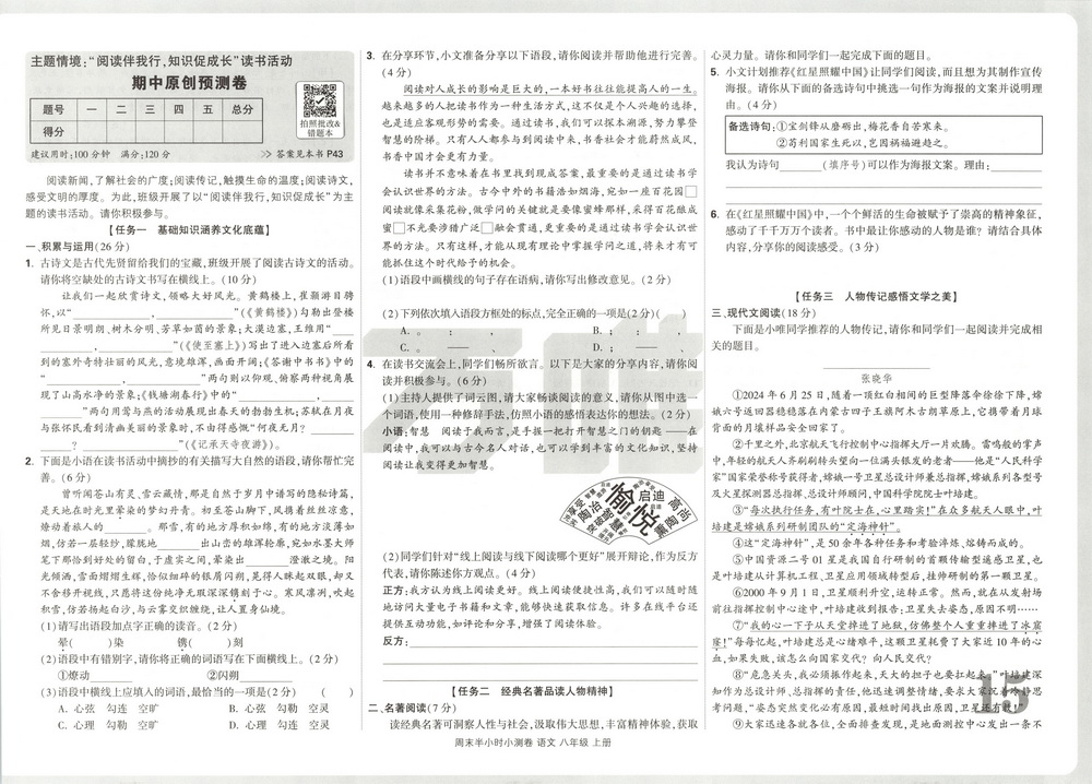 时间:120分钟 / 总分:120分/ 栏目:八年级语文上册2025-10-27 18:04:54