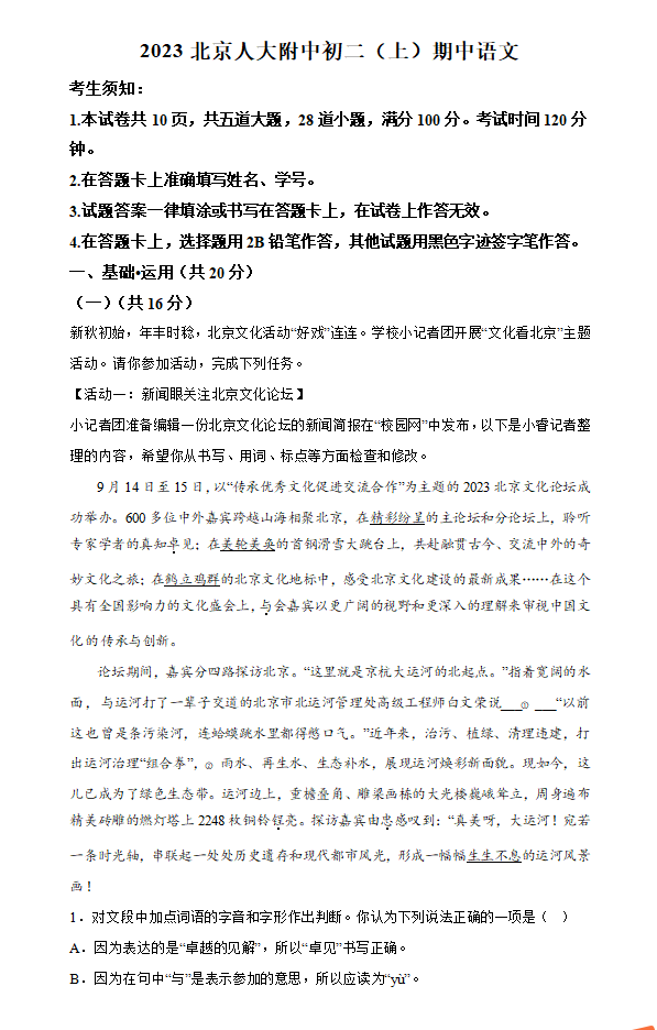 上一篇:北京市海淀区清华附属中学2023-2024学年八年级上学期期中语文试题