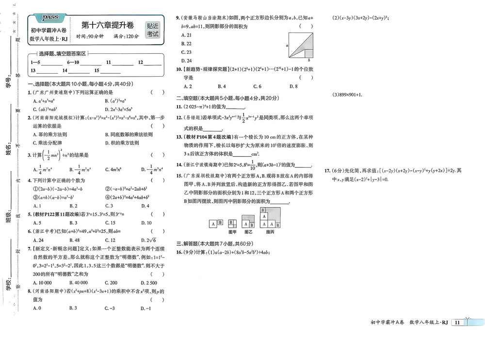 上一篇:新教材人教版八年级上册数学第十六章测试卷六