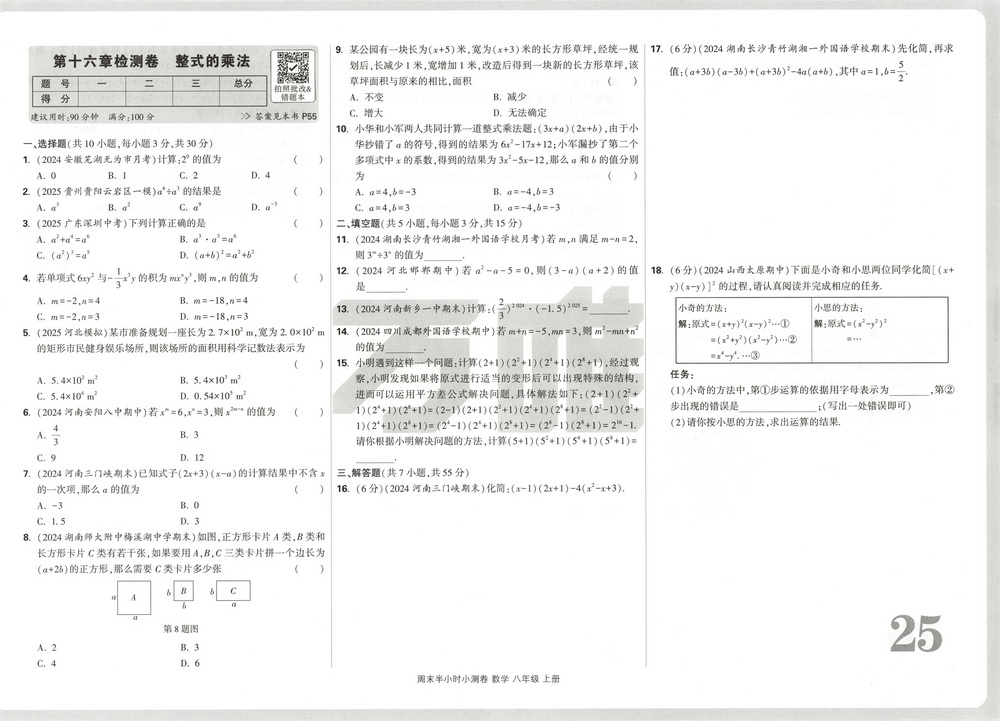 上一篇:新教材人教版八年级上册数学第十六章测试卷七