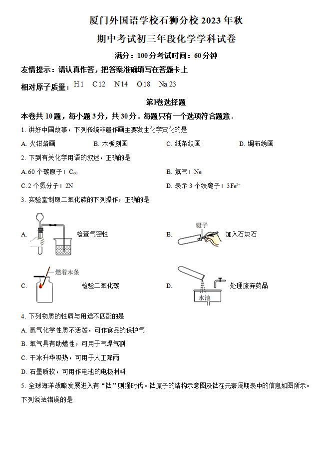 上一篇:福建省厦门市湖里区双十中学2023-2024学年九年级上学期期中化学试题