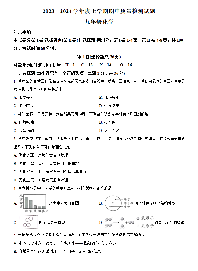 上一篇:山东省临沂市临沭县第三初级中学2023-2024学年九年级上学期期中化学试题