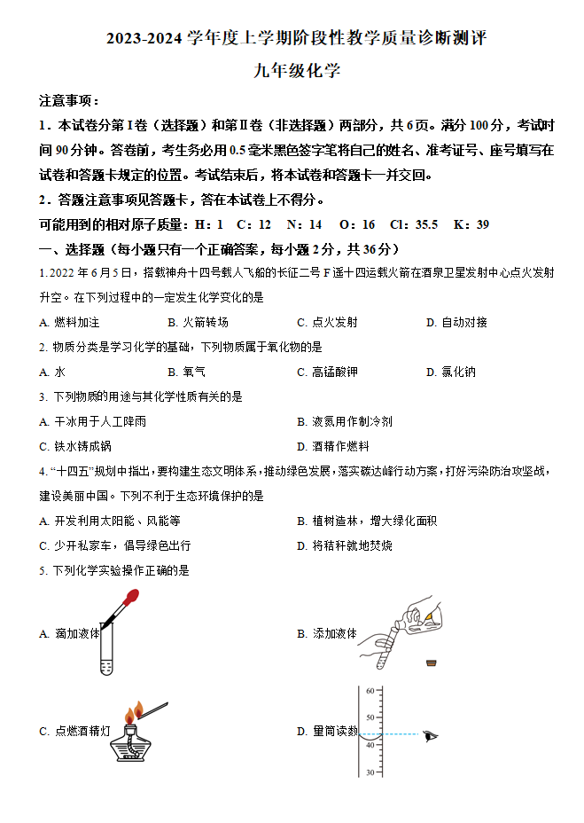 时间:120分钟 / 总分:120分/ 栏目:九年级化学上2025-10-29 09:53:43