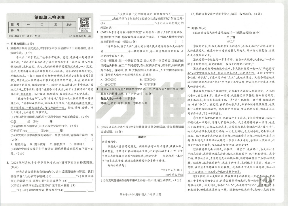 时间:120分钟 / 总分:120分/ 栏目:八年级语文上册2025-11-24 13:21:26