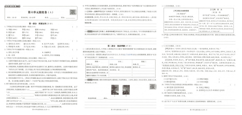 时间:120分钟 / 总分:120分/ 栏目:八年级语文上册2025-11-25 10:45:34