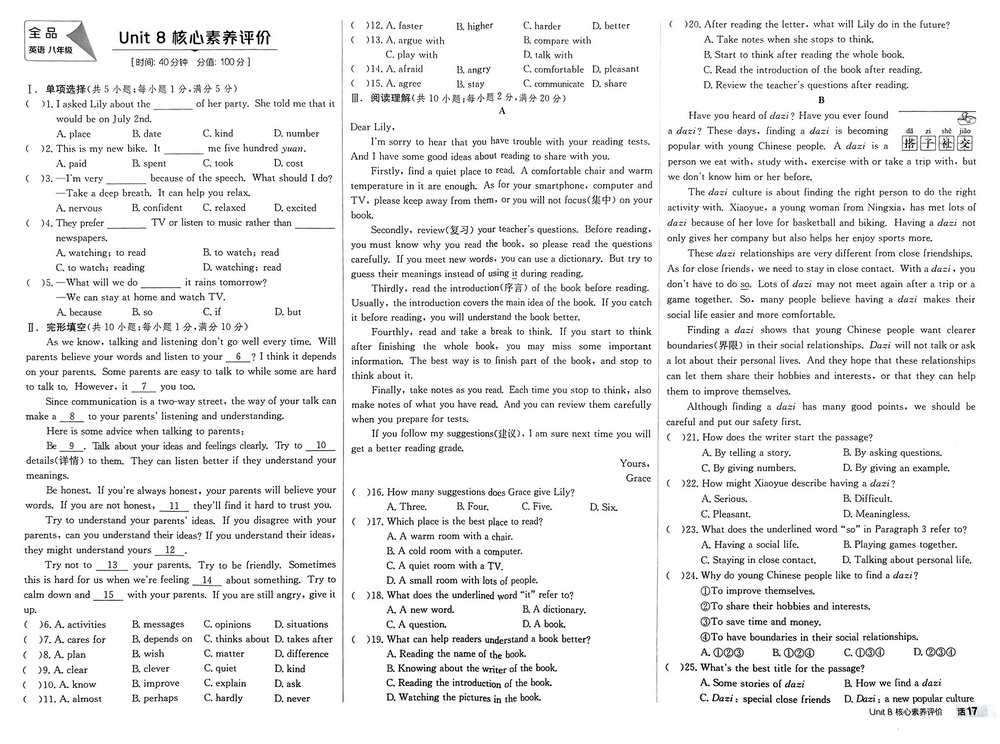 时间:120分钟 / 总分:120分/ 栏目:八年级英语上册2025-11-26 17:59:11