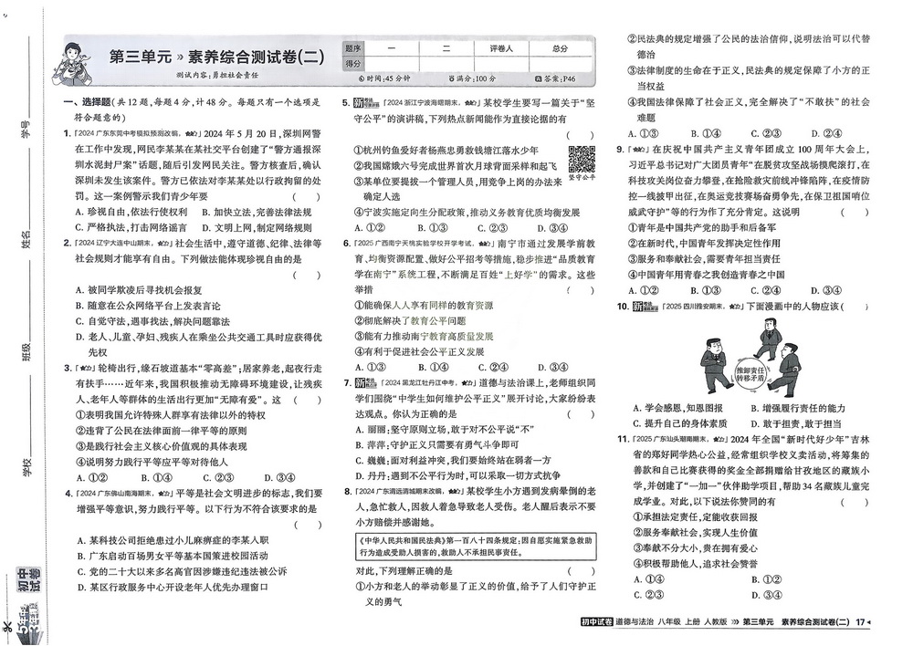 时间:120分钟 / 总分:120分/ 栏目:八年级历史政治2025-11-27 16:36:03