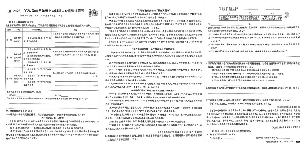 时间:120分钟 / 总分:120分/ 栏目:八年级语文上册2025-11-29 09:22:34