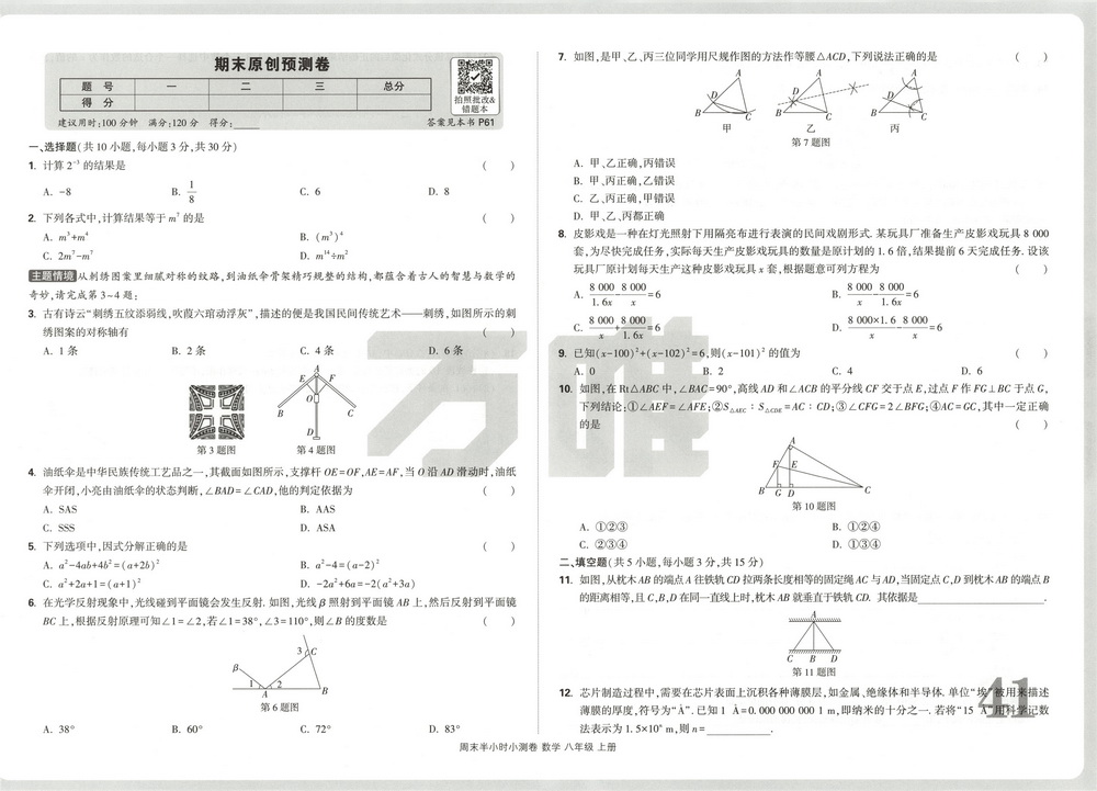时间:120分钟 / 总分:120分/ 栏目:八年级数学上册2025-11-29 15:55:08