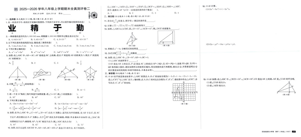 时间:120分钟 / 总分:120分/ 栏目:八年级数学上册2025-11-30 17:35:33