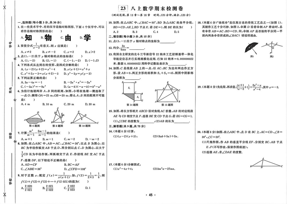 时间:120分钟 / 总分:120分/ 栏目:八年级数学上册2025-11-30 17:44:53