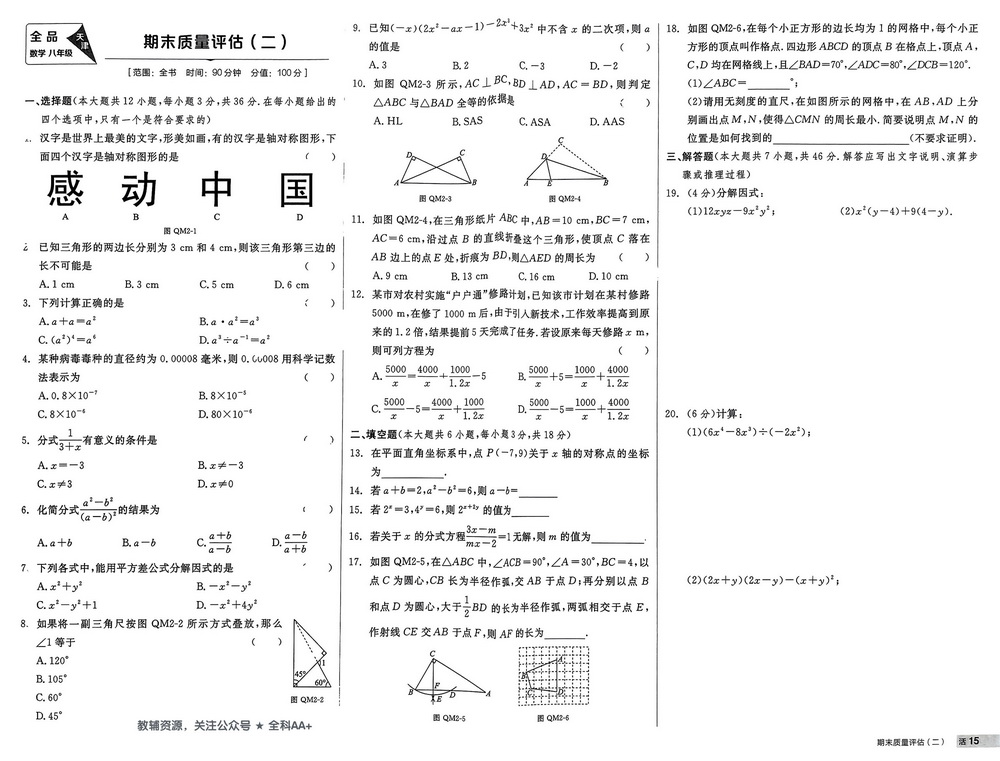 时间:120分钟 / 总分:120分/ 栏目:八年级数学上册2025-11-30 17:53:15