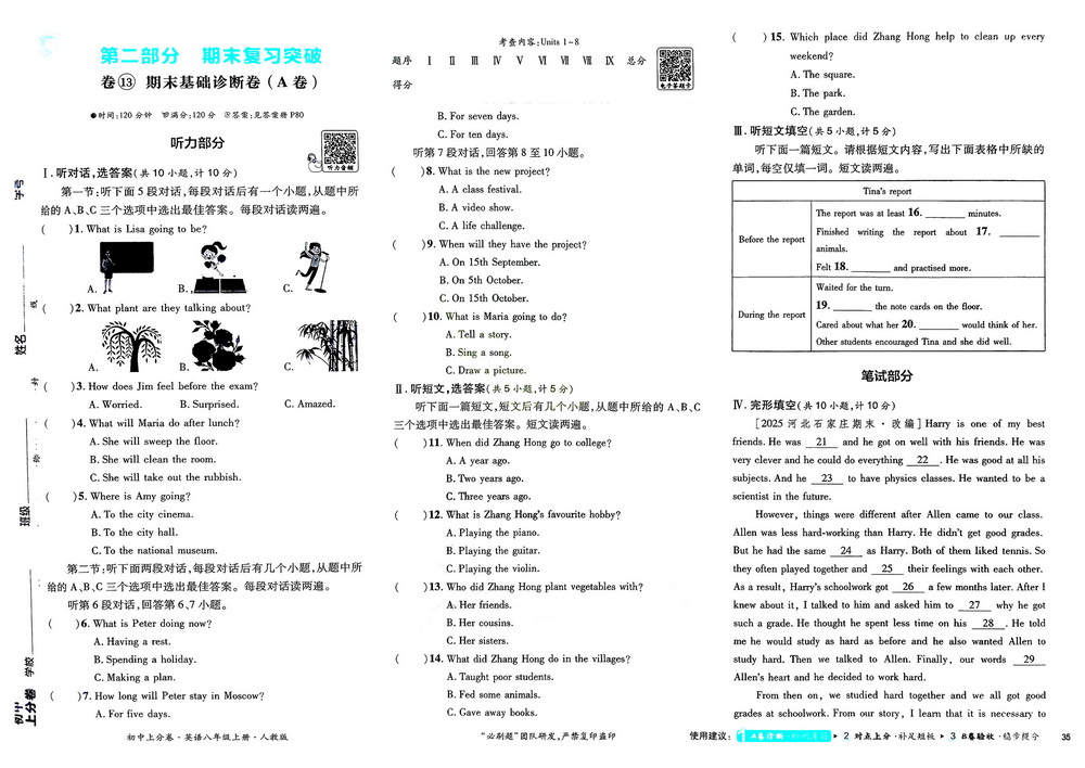 时间:120分钟 / 总分:120分/ 栏目:八年级英语上册2025-11-30 18:57:06