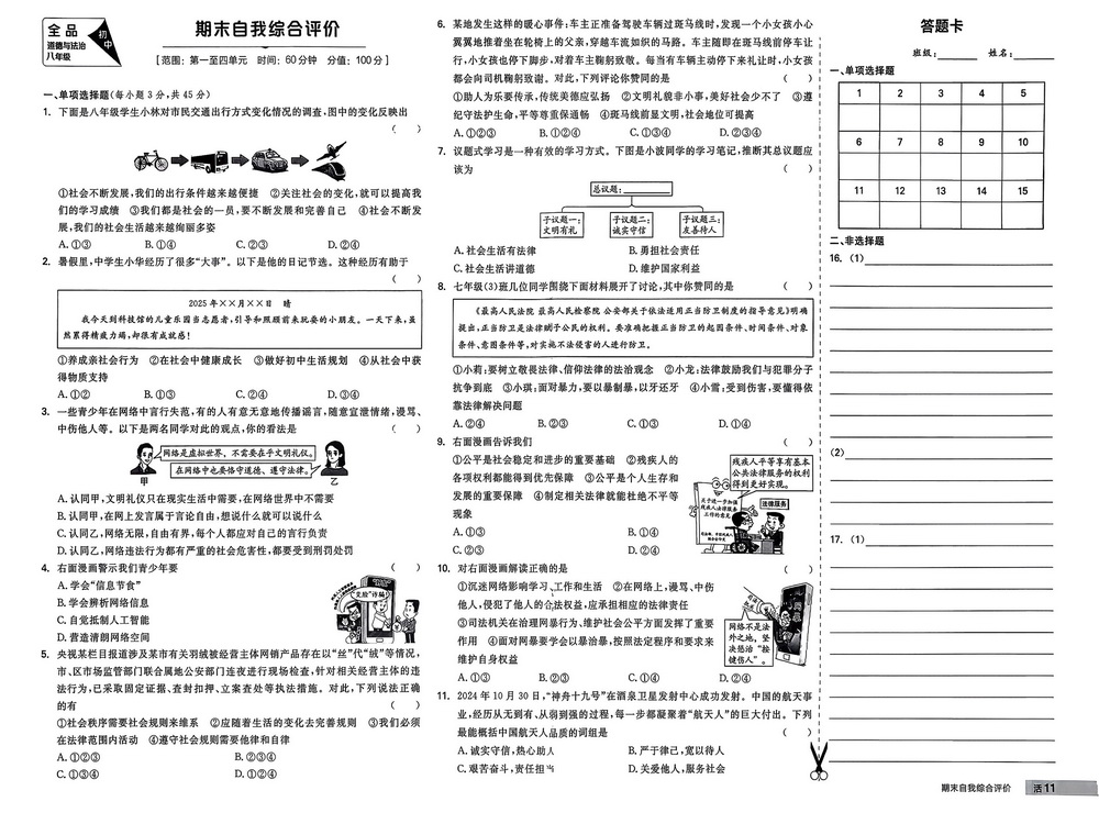上一篇:新教材人教版八年级上册道德与法治期末测试卷九
