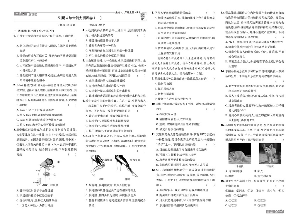 上一篇:新教材人教版八年级上册生物期末测试卷七