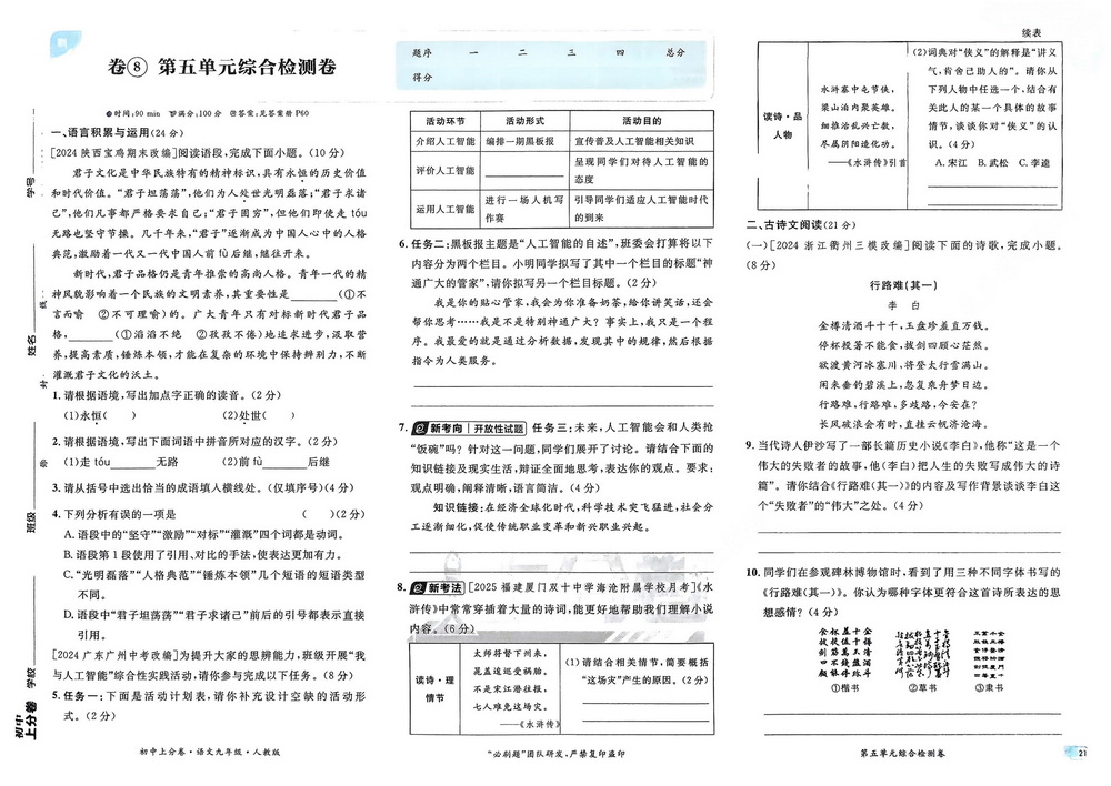 时间:120分钟 / 总分:120分/ 栏目:九年级语文上2025-12-04 13:29:22