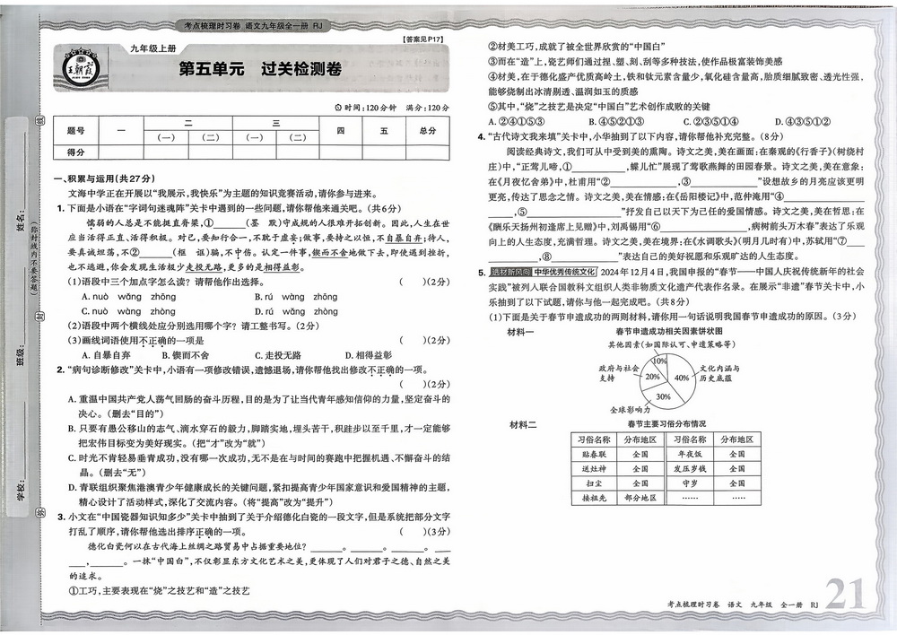 时间:120分钟 / 总分:120分/ 栏目:九年级语文上2025-12-04 16:52:16