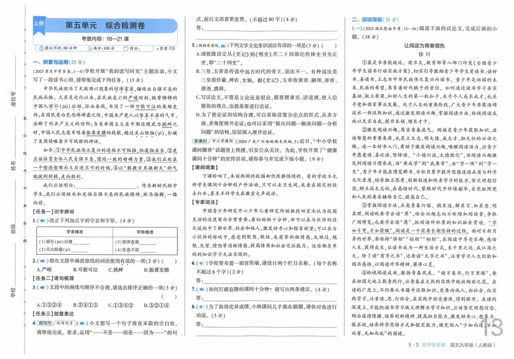 时间:120分钟 / 总分:120分/ 栏目:九年级语文上2025-12-04 17:06:08