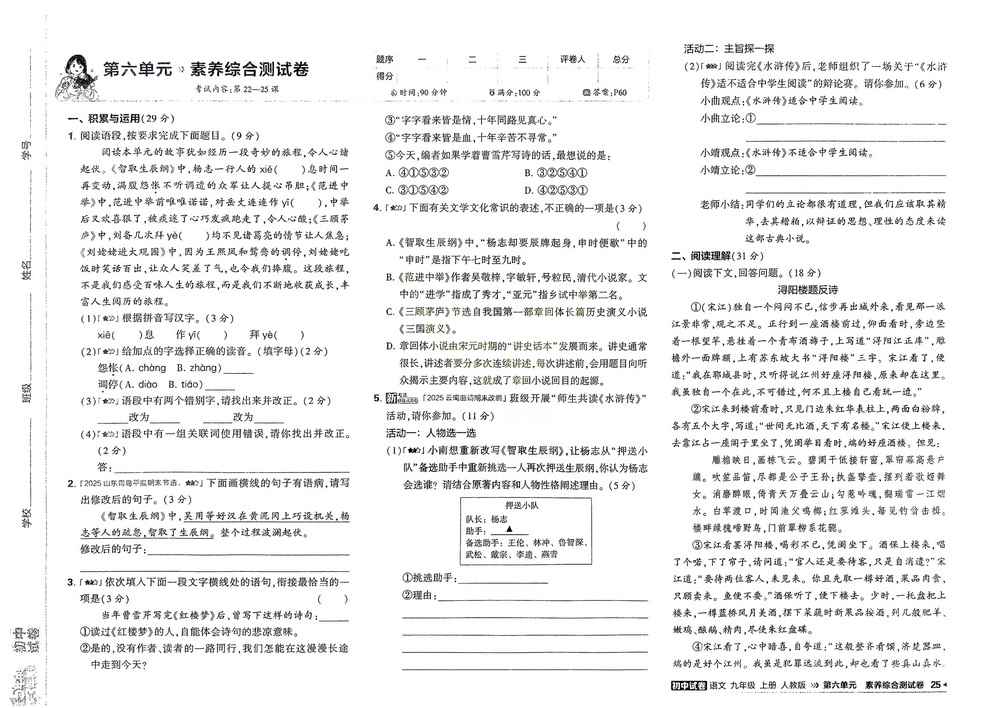 时间:120分钟 / 总分:120分/ 栏目:九年级语文上2025-12-04 17:36:15