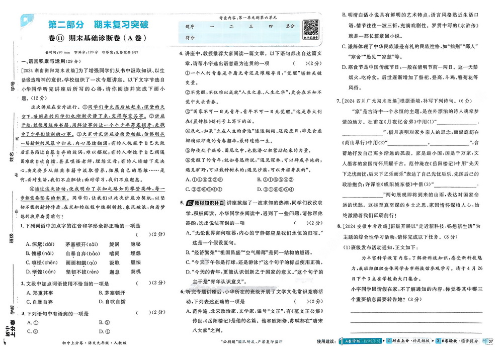 时间:120分钟 / 总分:120分/ 栏目:九年级语文上2025-12-04 19:12:23